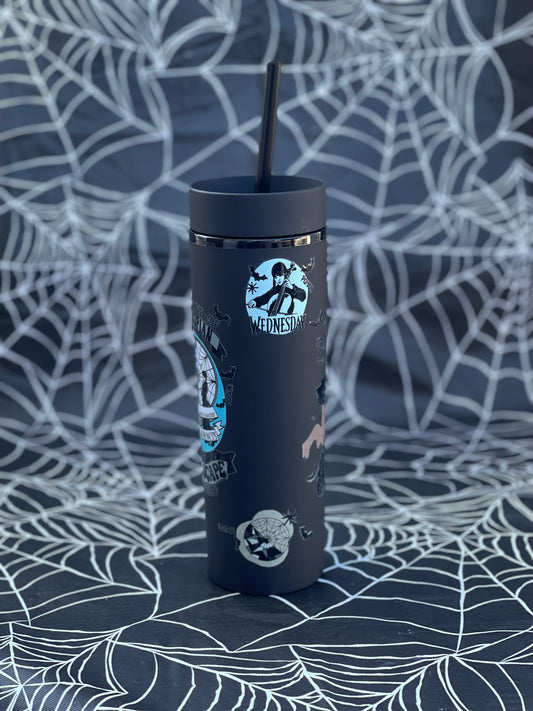 Wednesday Black Dripping Tumbler with 3D Thing hand